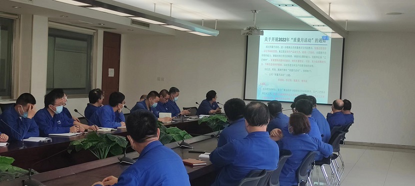 2022年公司質量月啟動會于8月23日上午在公司辦公樓310會議室召開。公司總經理米永旺、常務副總梁敬斌、銷售副總侯志平、生產副總侯國棟、工會主席趙金伶,各分廠廠長、事業部部長及技術質量主管,技術研發部部長、副部長、室主任,工藝室、材料室專業技術人員,質管部長、副部長、主任工程師,生產計劃部部長、運行保障部部長、采購部部長、對外協作部部長等參加了會議。