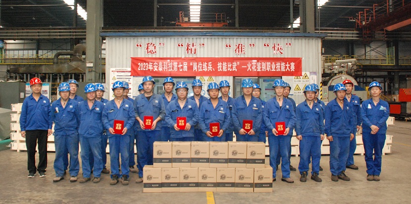 鋼種鑒別工又稱火花工,是根據鋼鐵材料在磨削過程中,所出現的火花爆裂形狀、流線、色澤、發火點等特點,區別鋼鐵材料化學成分差異。比賽過程中,參賽選手穿戴好勞保防護用具,拿起砂輪,屏氣凝神,詳細觀察火花的火束粗細、長短、色澤變化情況,從所有樣棒中精準鑒別鋼種和型號。經過2個多小時的激烈角逐,最終郭俊峰獲得一等獎,齊雪林、李曉昆獲得二等獎,高賀、李金、賈晚榮獲得三等獎。